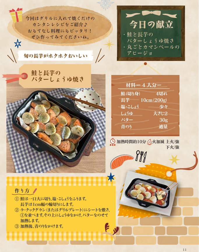 材料を切ってグリルに並べるだけの“ほったらかし調理”なのに、バターしょうゆの香ばしさと、ホクホクの長芋、ふっくら鮭が相性抜群。